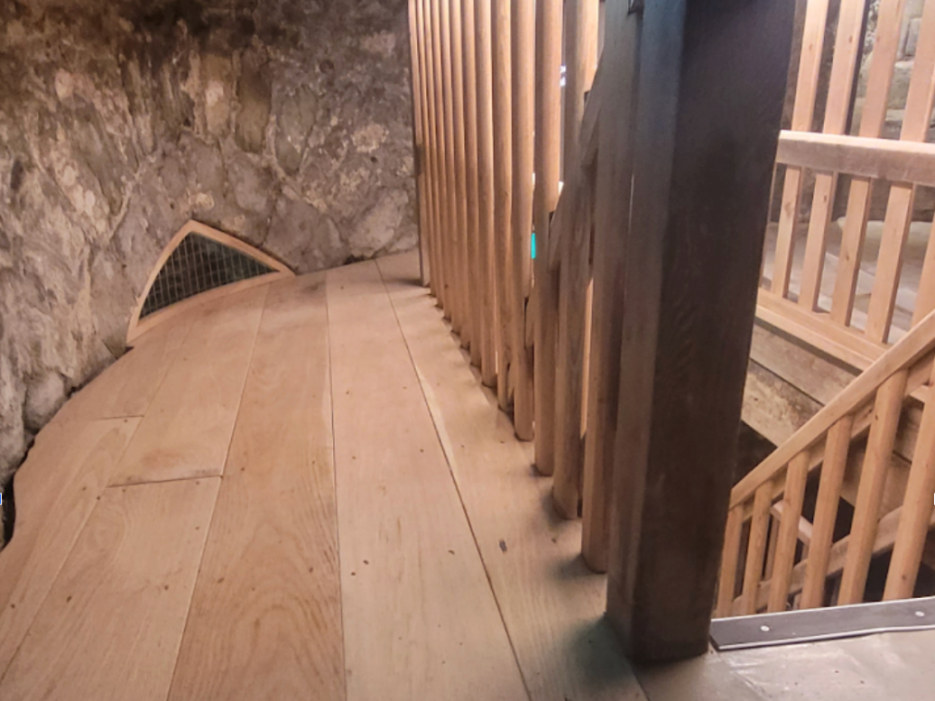 Dover Castle stands as one of England’s most iconic medieval fortresses, overlooking the English Channel from its commanding position above the White Cliffs. This Grade I listed structure has guarded England’s shores since the 11th century and remains one of Kent’s most visited heritage landmarks. IMI Fire Doors provided specialist joinery and carpentry services within St. John’s Tower, one of the castle’s historic structures. Our work included installing five bespoke doors crafted to match the building’s period character, fitting semi-circular windows that respect the tower’s architectural integrity, replacing floor joists to modern structural standards, fitted new European oak floorboards, and a full refurbishment of the internal staircase. This project showcases our ability to work sensitively on heritage properties where modern installation techniques must be balanced with conservation requirements, helping protect this nationally significant monument for future generations.